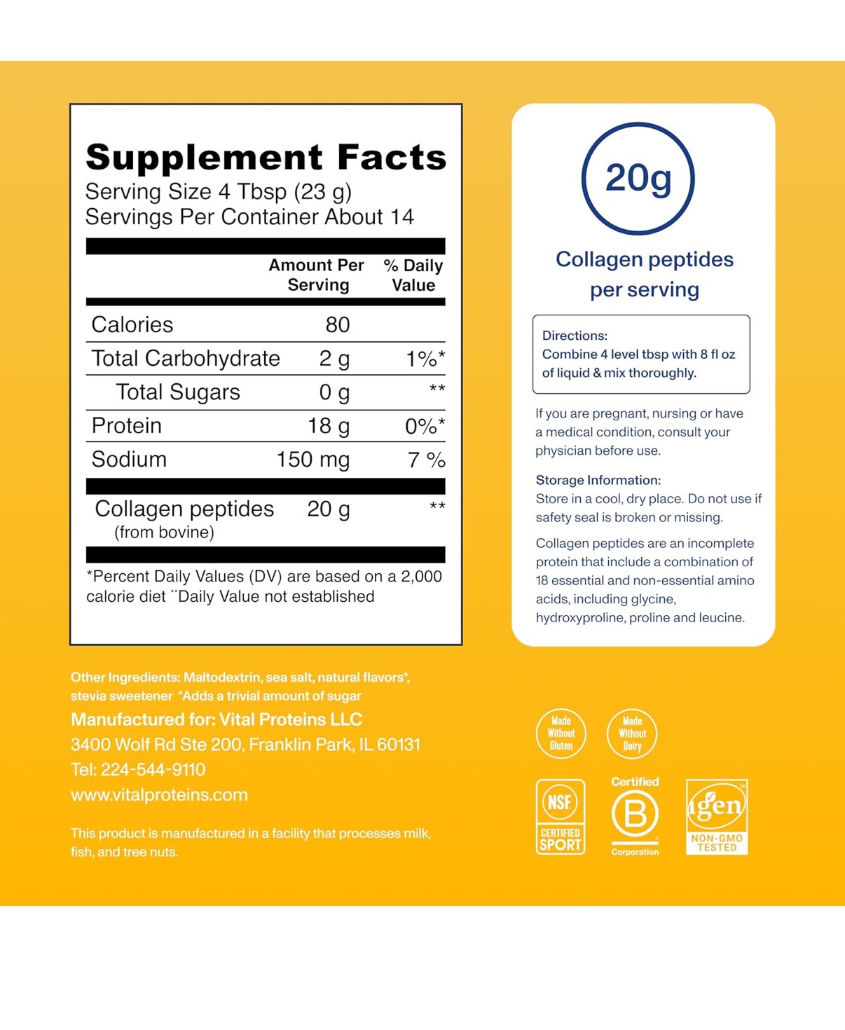 Collagen Peptides Powder Supplement: Vital Proteins LLCThis collagen peptides powder is a decent way to supplement protein, especially if you are looking to support joint health or skin elasticity.