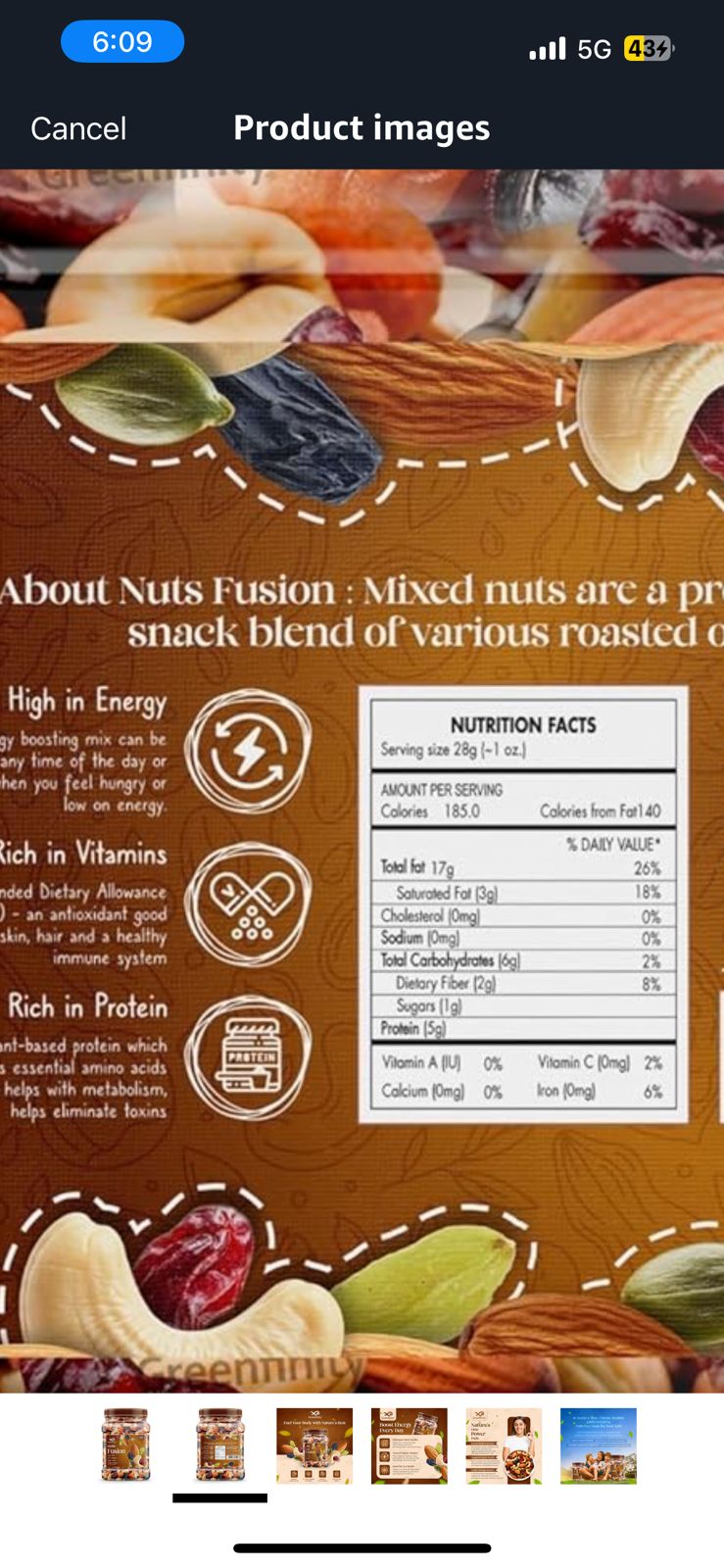 Overall, this is a good, straightforward snack option. Nuts are nutrient-dense but high in calories, so portion control is key. The marketing claims about energy, vitamins, and protein are generally true for nuts, though the %DV for vitamins shown is low, which is typical for this type of food.