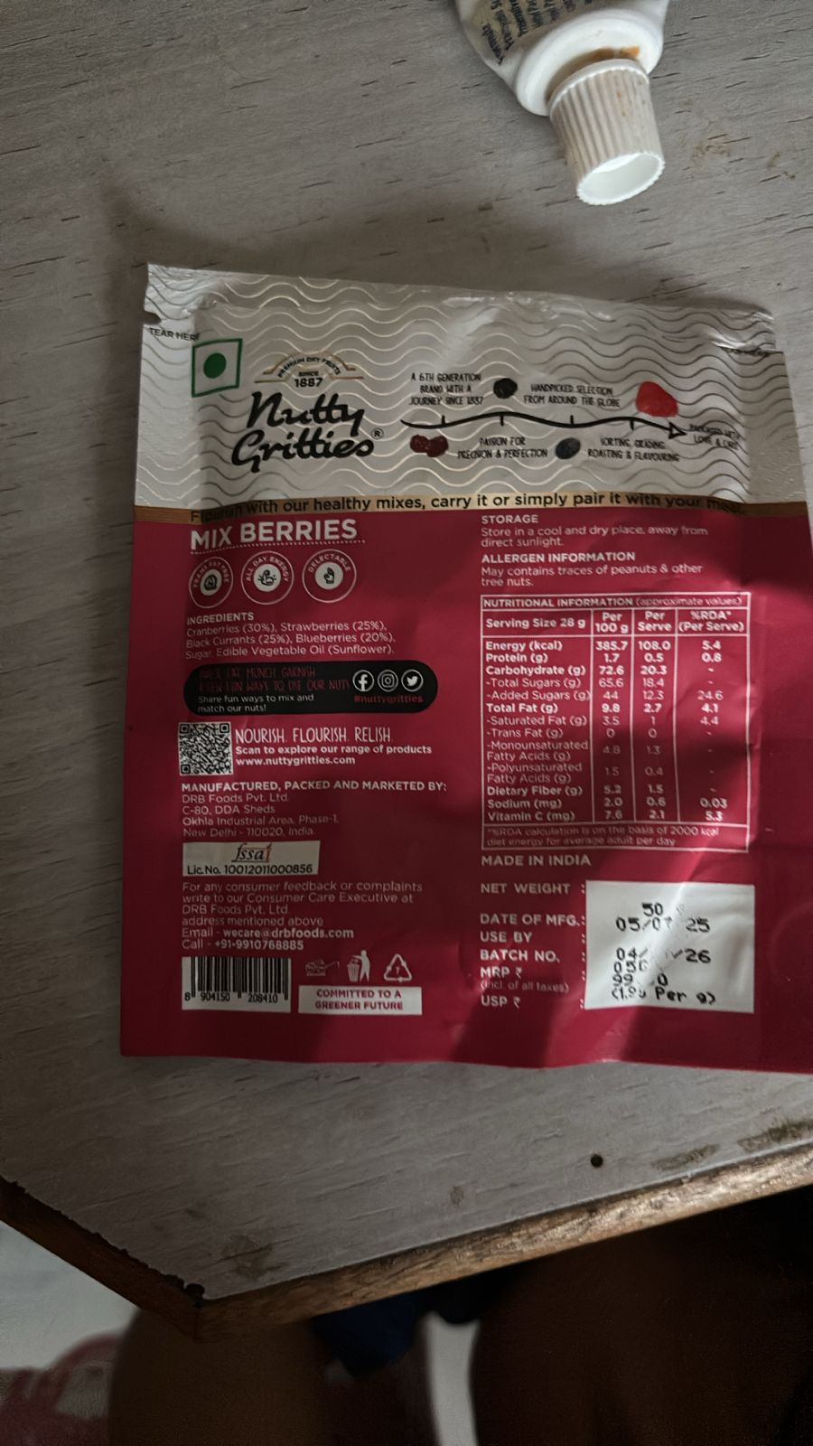 Mixed Berries: Nutty GrittiesThis mixed berry snack is essentially candy due to its high sugar content, making it a mediocre choice for a healthy snack.