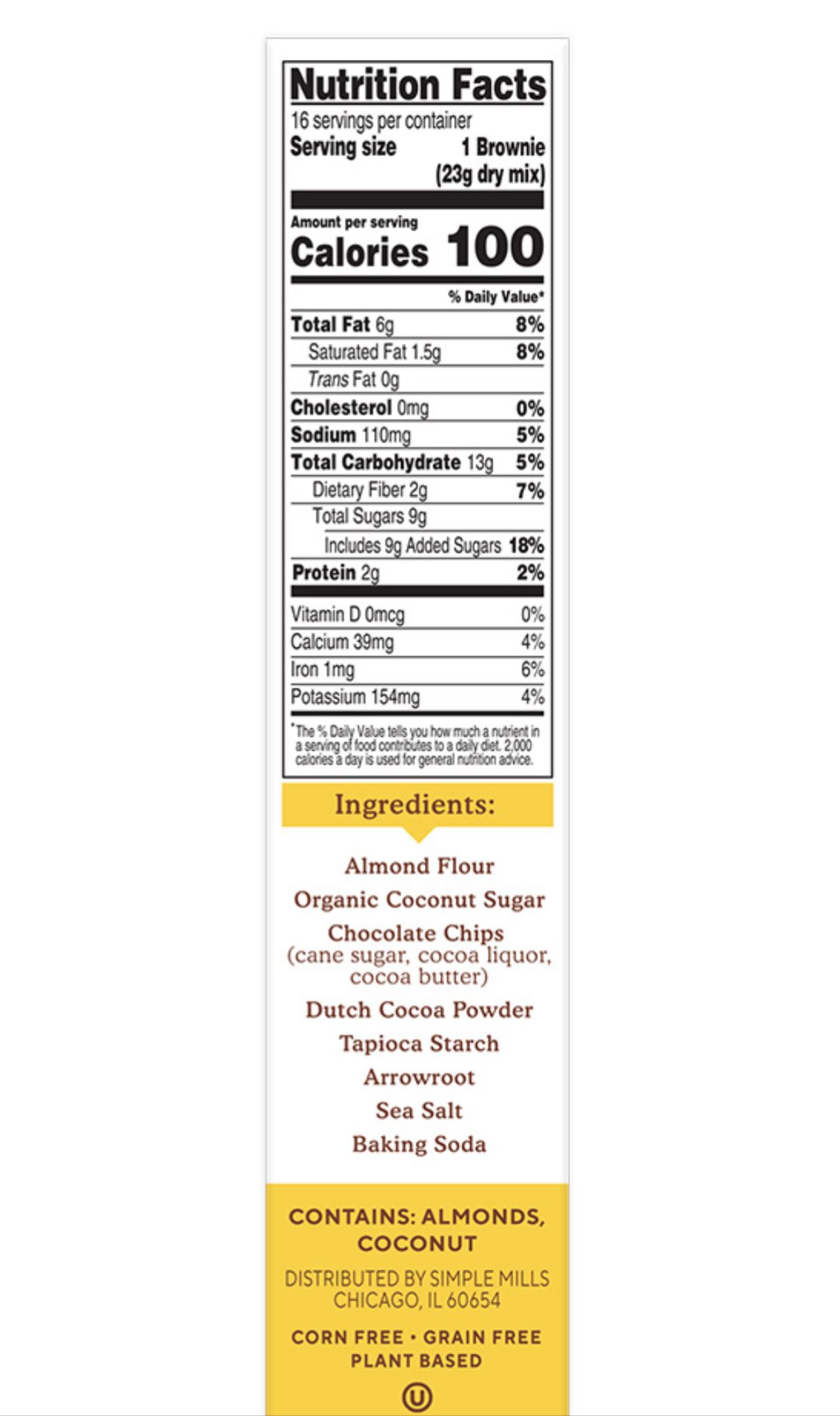 Brownie: Simple MillsOverall, this brownie mix is a decent option for a treat, especially if you're looking for a grain-free alternative. It has some benefits, but also a few concerns.