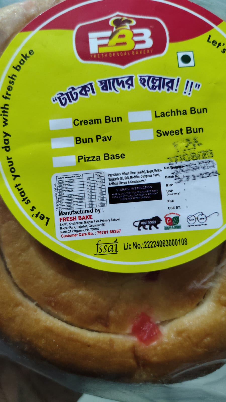 Sweet Bun: Fresh Bengal BakeryThis sweet bun is a highly processed item, primarily made from refined flour and sugar. It offers very little nutritional value and is best considered an occasional treat rather than a regular snack.