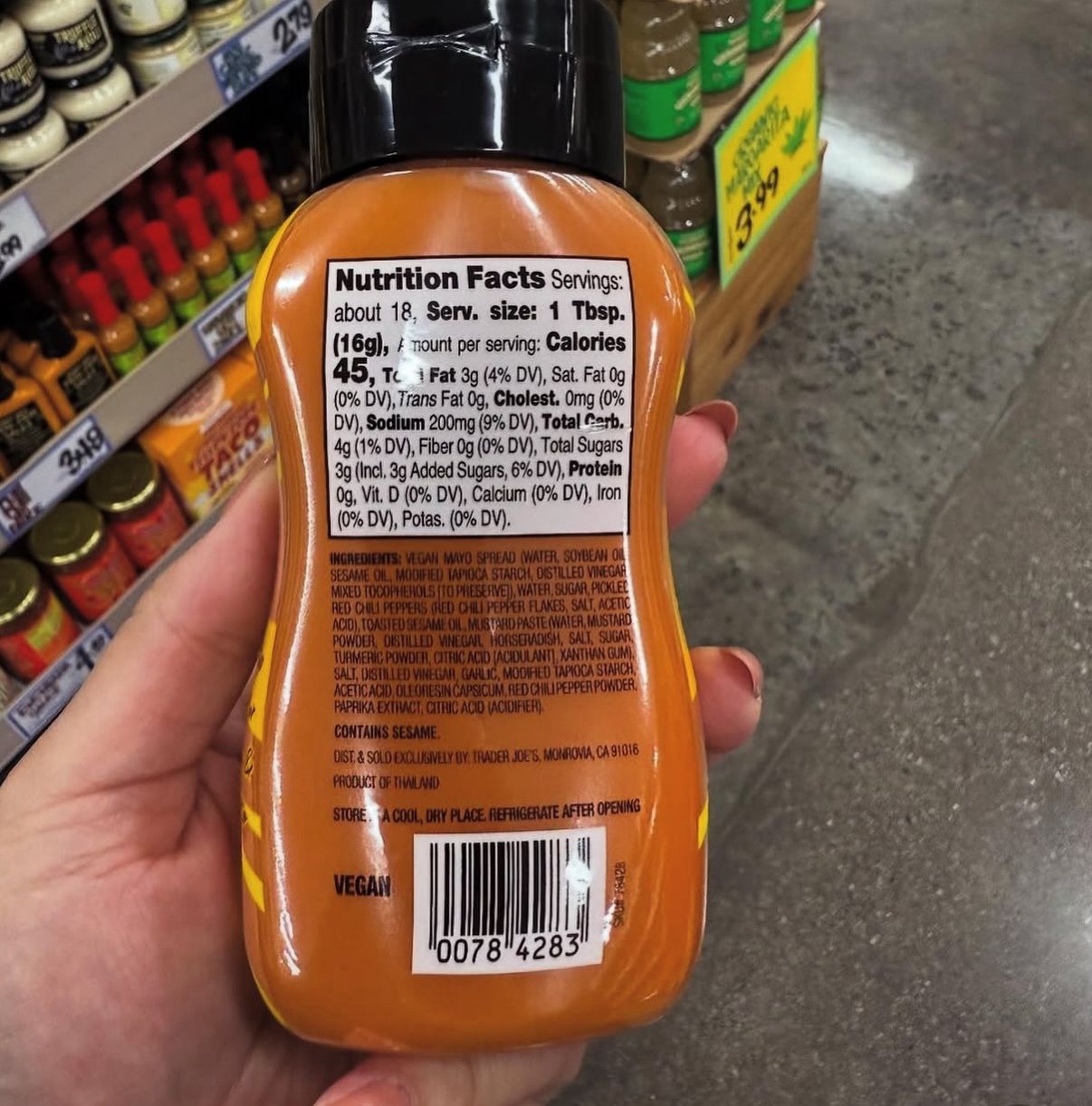 Vegan Mayo Spread: Trader Joe'sThis vegan mayo spread is a decent choice for those looking for a plant-based condiment, but it's important to be mindful of its sodium content and fat source. As a condiment, it's typically used in small amounts, which helps mitigate some concerns. The flavor profile is likely spicy and savory given the ingredients. This is not a healthy choice for kids. If you are looking for healthier alternatives for your kids or for yourself, read on.