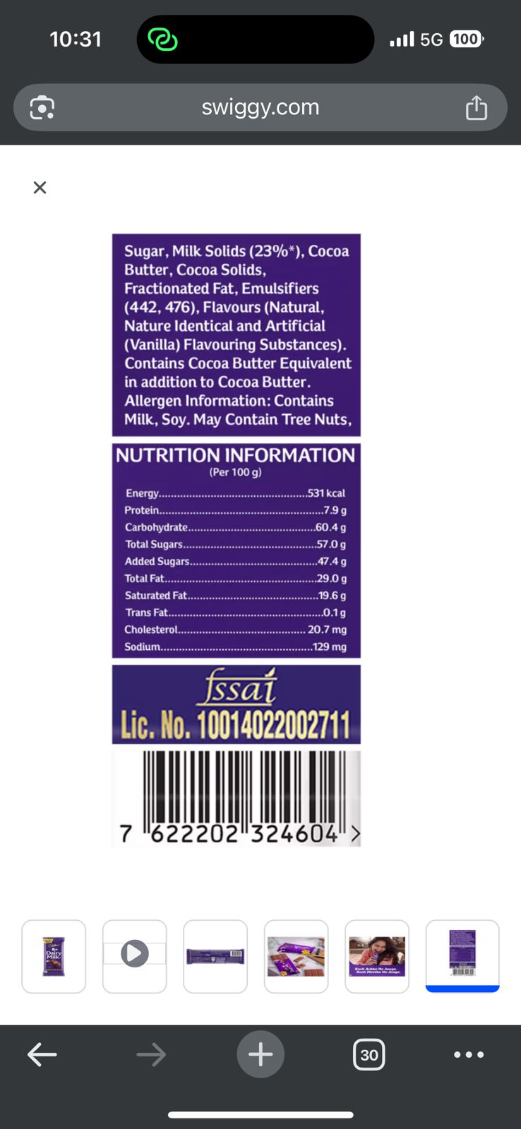 Chocolate: Cadbury Dairy MilkThis is a classic milk chocolate, meant for an occasional treat and not for daily snacking. It's very high in sugar and saturated fat, much more than what you’d want in a regular snack. The ingredient list is standard for mass-market chocolate, but there are no real health benefits here.