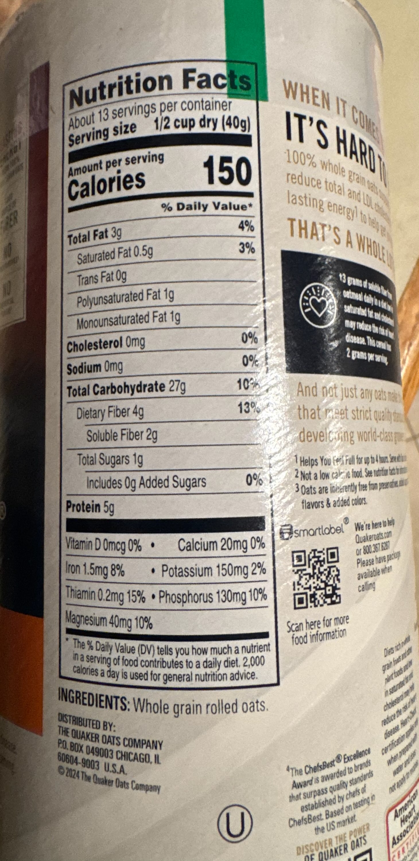 Rolled Oats: Quaker OatsThis is a high-quality, minimally processed whole grain product that makes an excellent breakfast base. The single ingredient - whole grain rolled oats - is exactly what you want to see in a staple food item.