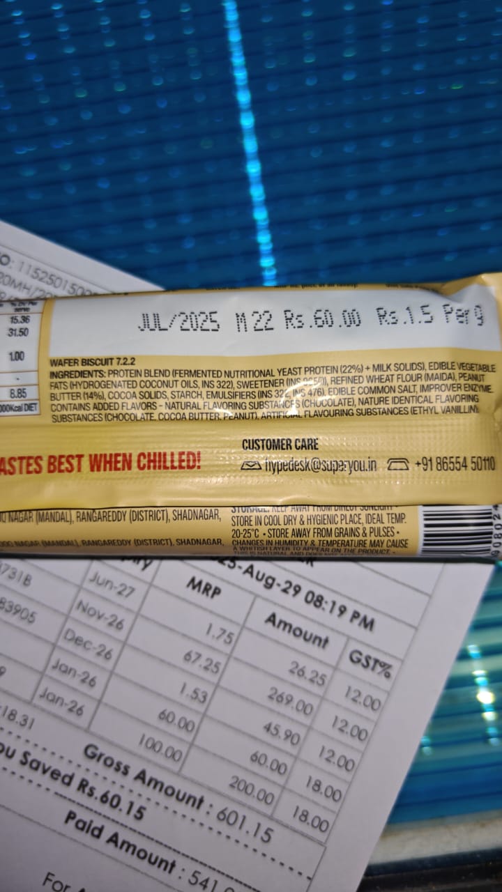 Wafer Biscuit: Unspecified BrandThis wafer biscuit is a highly processed snack with some protein, but it comes with significant drawbacks. It's not a strong choice for regular consumption due to its fat and sweetener content.